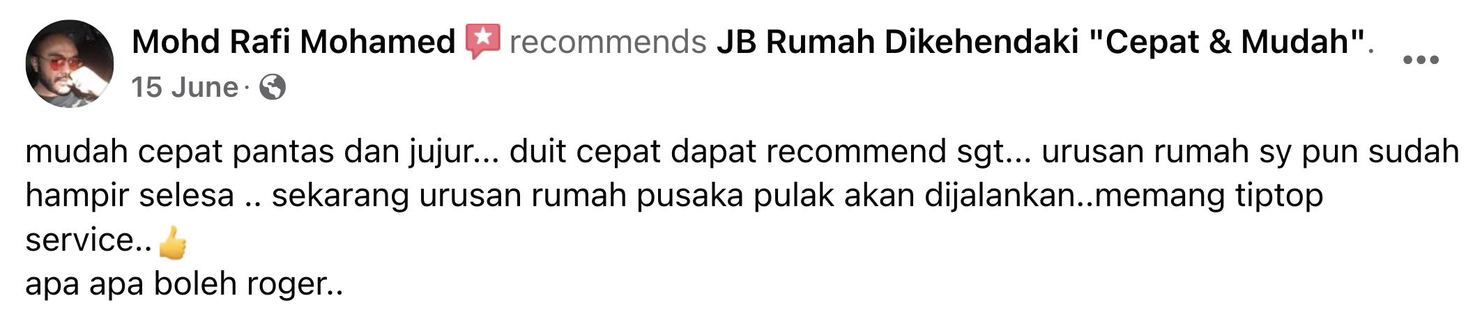 Kami adalah perunding hartanah sehenti yang komited untuk menyediakan perkhidmatan yang pantas dan mudah kepada pembeli serta pemilik hartanah dalam menyelesaikan pelbagai isu yang berkaitan dengan hartanah. Dengan visi "cepat & mudah", kami berdedikasi untuk mempermudahkan proses dan membantu menyelesaikan pelbagai masalah seperti pemindahan hak milik, urusan rumah lelong, masalah CTOS atau CCRIS, isu kewangan, dan banyak lagi. Sama ada anda berhadapan dengan masalah hartanah tertunggak, atau memerlukan panduan dalam menguruskan hartanah pusaka, kami di sini untuk memberi penyelesaian terbaik.
